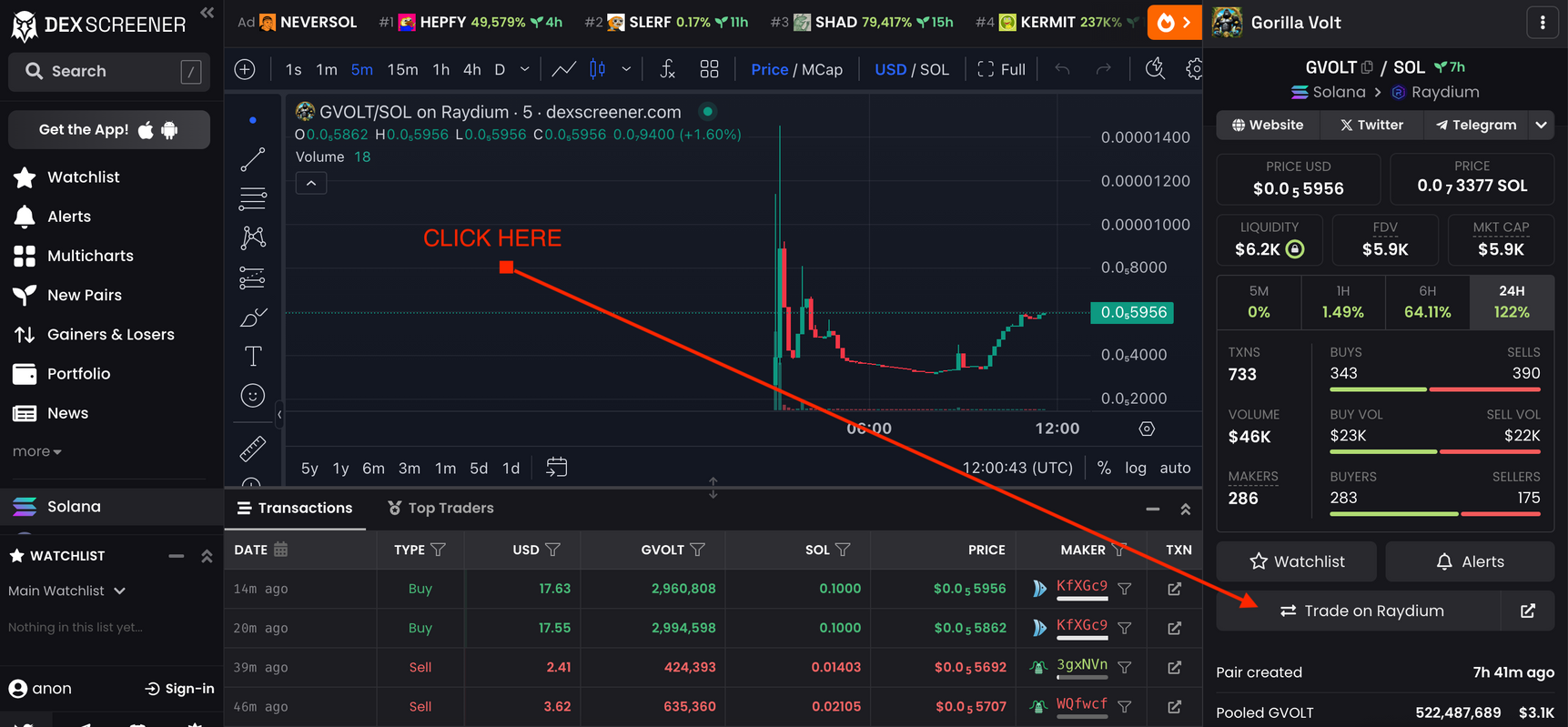 Click on the BUY NOW button above on this website to go to dexscreener.com